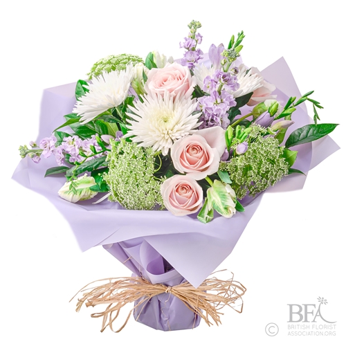 Full of early summer fragrance and country style. This care free handtied would grace any home.