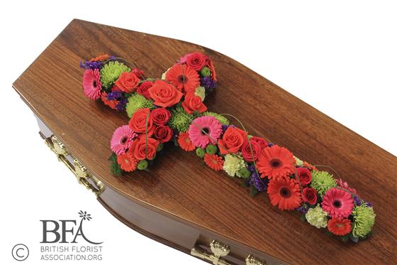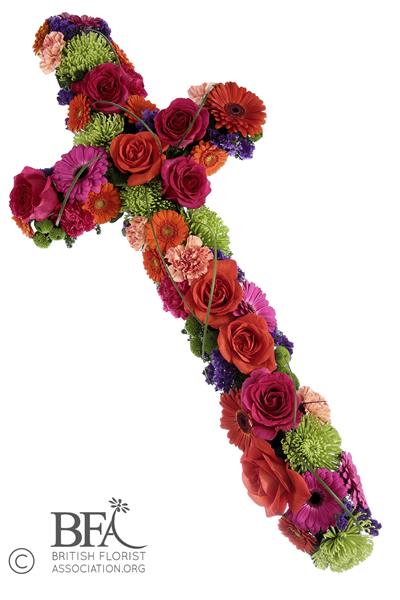 A cross of mixed flowers and foliage available as pictured or in a range of colours. As with all tributes please contact us if you require a different colour choice to the ones given.